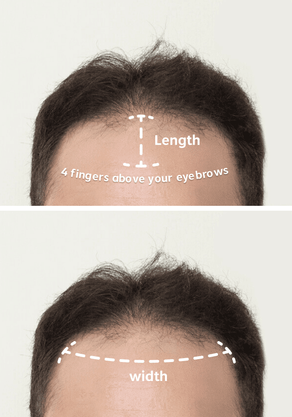 Length: Place the tape measure at the center of the front hairline, and measure directly across the middle of the head.